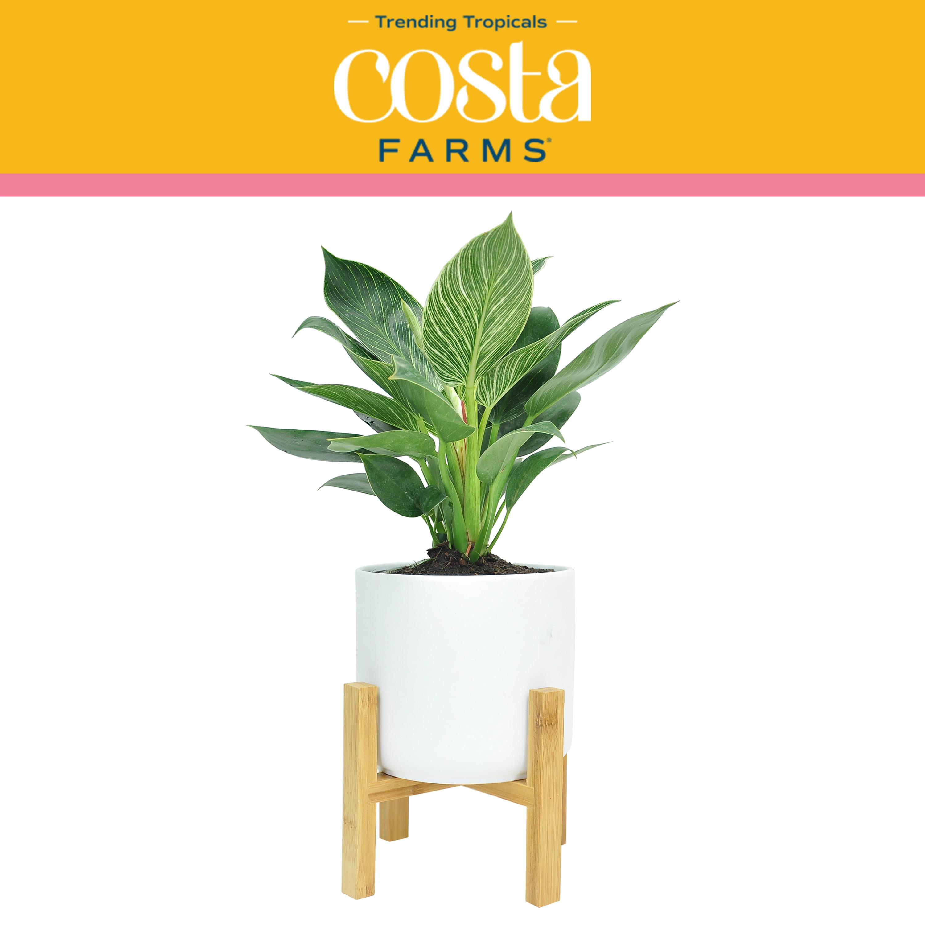 Costa Farms Trending Tropicals Live Indoor 15in Tall Green Philodendron Birkin Medium Indirect Light Plant In 6in Mid Century Modern Planter Walmart Com
